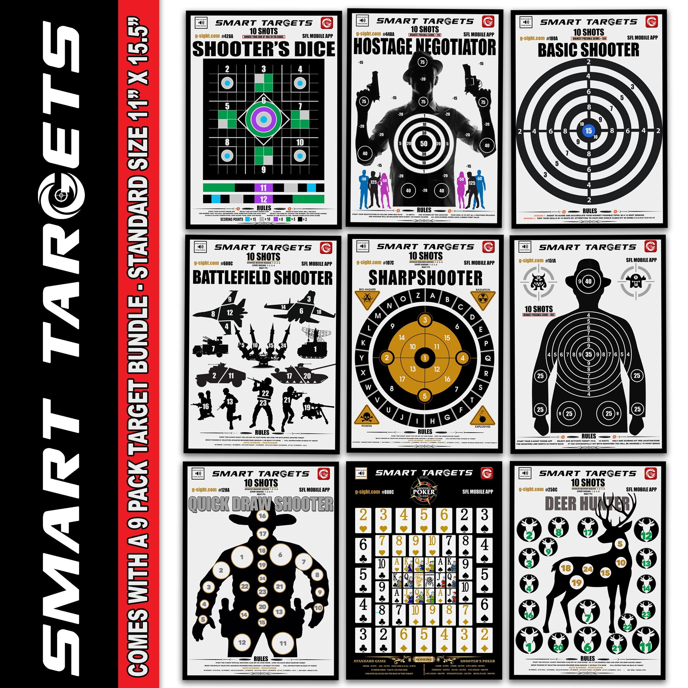 All of our SMART TARGETS have been specifically designed to work with our 100% FREE G-Sight SFL Mobile App, for iOS and Android, taking our customer base into a different realm of advanced gameplay and training! The App is packed full of features like auto Target ALIGNMENT, and auto SCORING with game play functions and features that will challenge even the most accomplished shooters in the world!