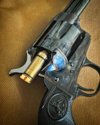 Our G-Sight Dry Fire Training System uses a laser cartridge that matches your firearm’s caliber. Insert the cartridge into your chamber, and when you pull the trigger, the firing pin hits a rubber strike pad, causing a quick laser burst discharge. This burst "hits" our SMART TARGET, where our FREE SFL Mobile App (available on Android and iOS) captures the laser strike with your phone’s camera, identifying the exact point of impact.