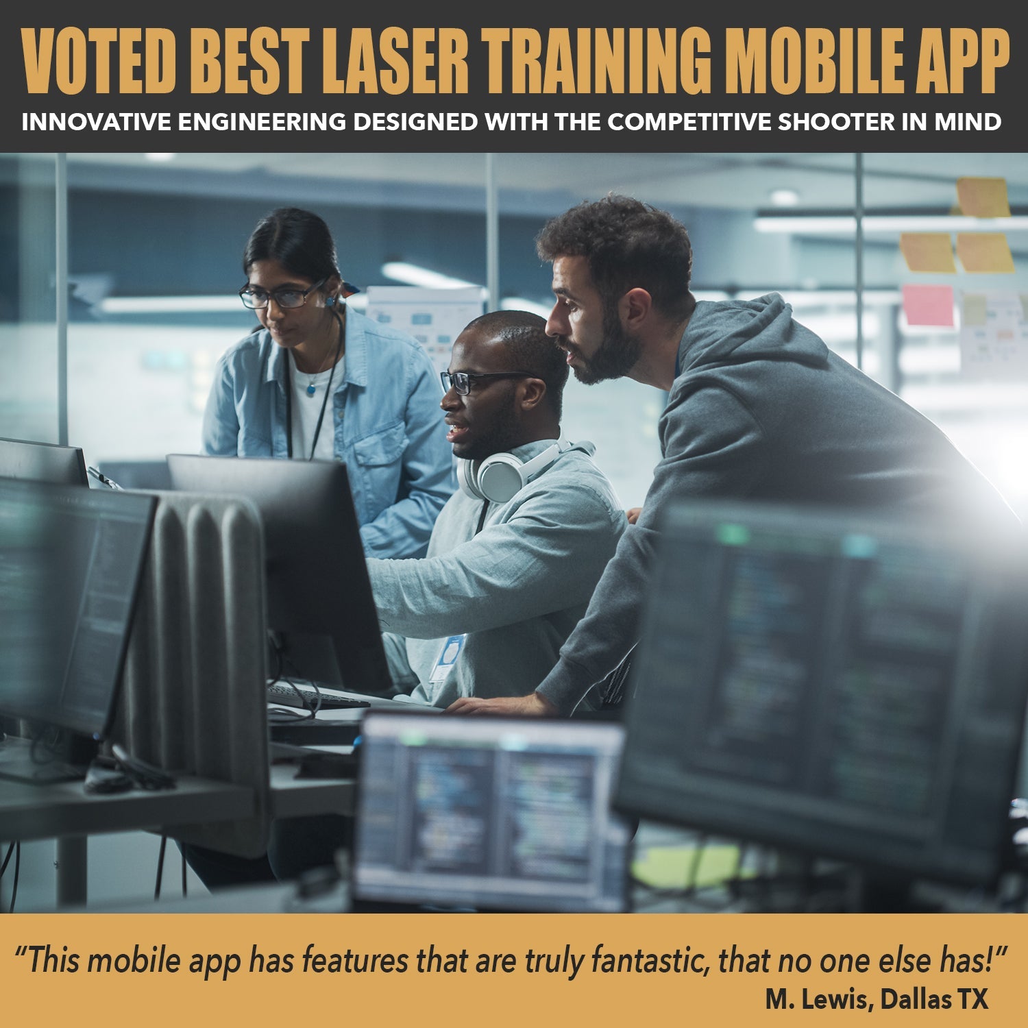 These targets are produced with a special anti glare and non-reflective surface so that our app's laser detection will be instantaneous and accurate for as long as you use the target. Our new state of the art mobile phone app takes our customer base into a different realm of advanced game play and training.