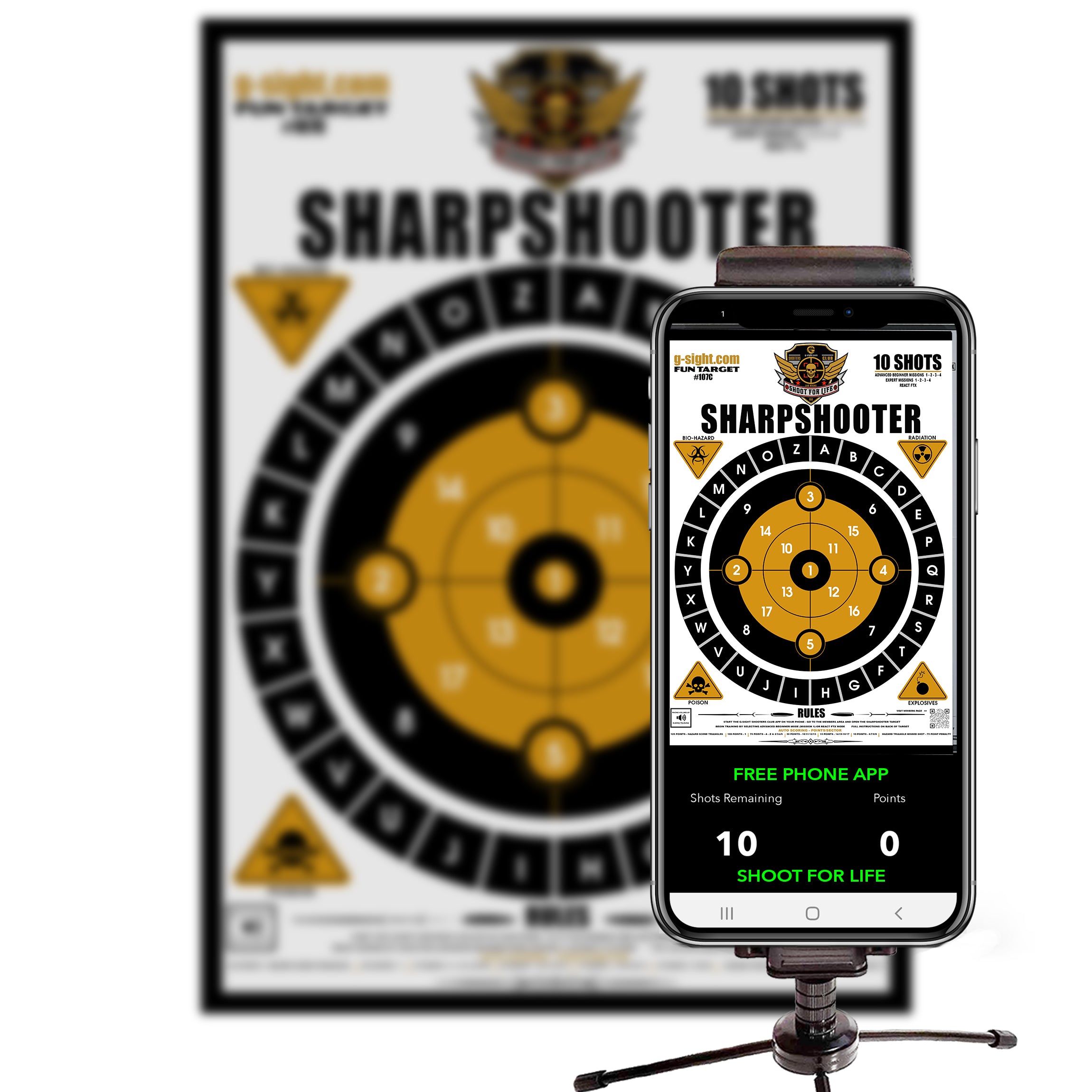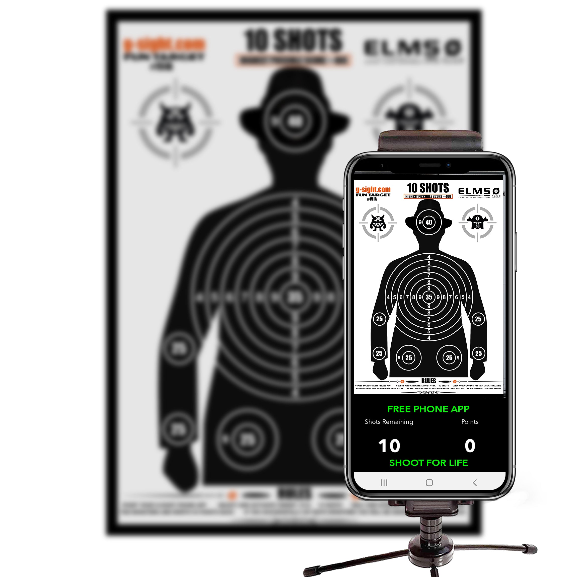Our TARGETS are the first laser targets with technology and programming built in! This is not "just a piece of paper"! This target, when used with our 100% FREE brand new state of the art SHOOT FOR LIFE MOBILE APP, includes auto ALIGNMENT, auto target SCORING with game play functions, features and randomized AUDIO COMMANDS that will challenge even the most accomplished shooters in the world!